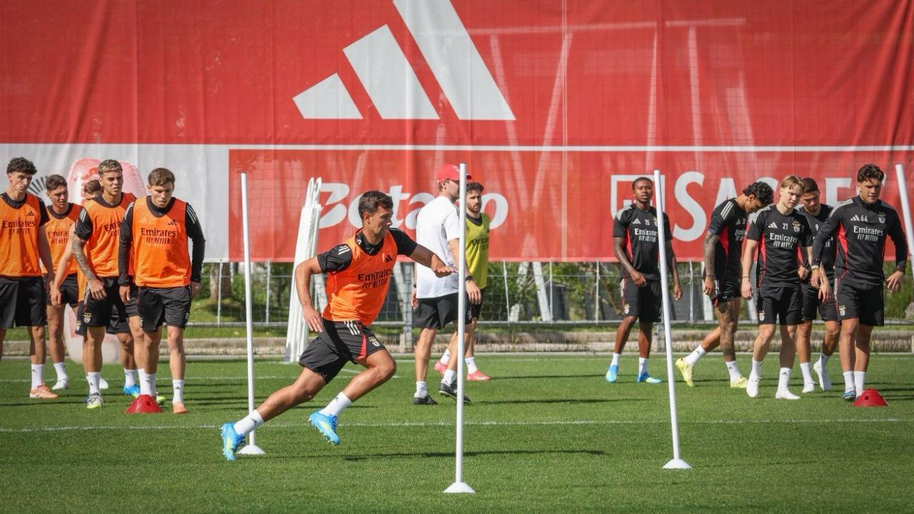O treino desta quinta-feira dividiu-se entre trabalho no ginásio e no relvado e contou com a presença de Nuno Félix, médio de 22 anos que regressa à competição depois de uma entorse no joelho direito com rotura completa do ligamento cruzado anterior, sofrida em julho de 2025.