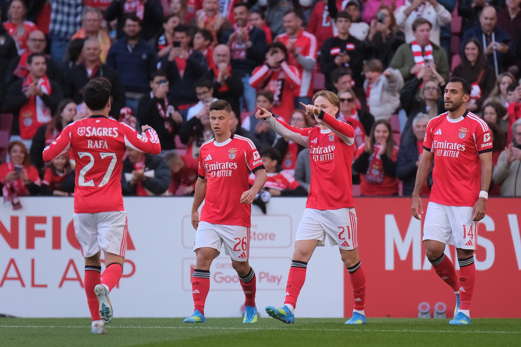 Logo aos três minutos, Andreas Schjelderup abriu o marcador, aproveitando um cruzamento de Gianluca Prestianni, que esteve em destaque na fase inicial do encontro. Pouco depois, aos 14, foi novamente o jovem argentino a desequilibrar, desta vez pela esquerda, assistindo Rafa para o segundo golo das águias.